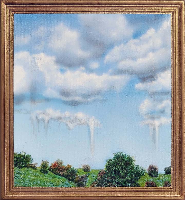 "Clouds With A Point To Make #2" 12"x 11" Acrylic on Linen Trompe l'oeil frame |