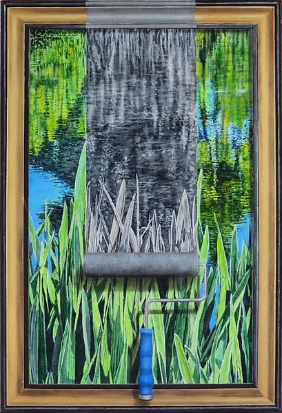 "Wipeout" 34"x23" Synthetic polymer on Canvas Trompe l'oeil frame |